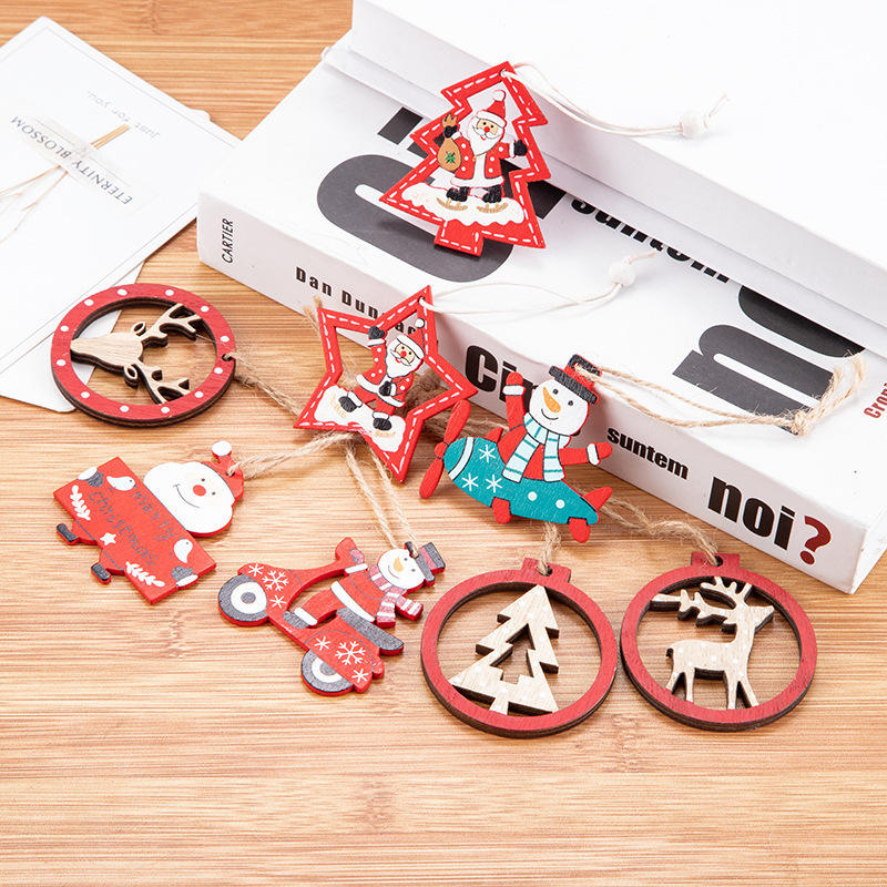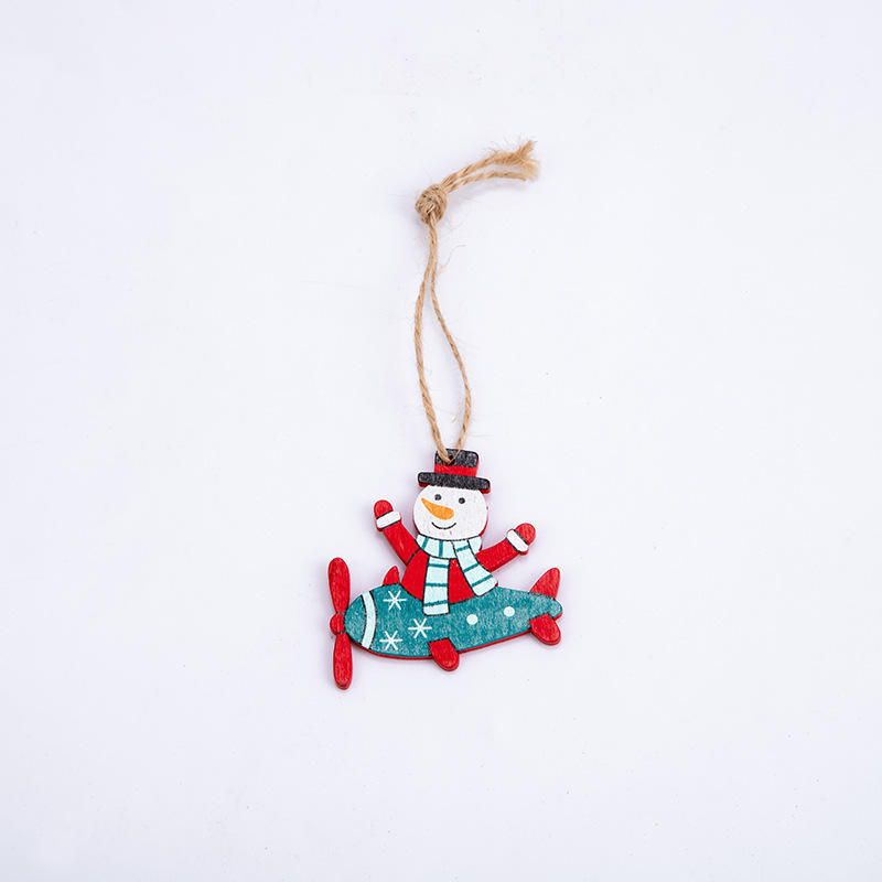 Pendentifs suspendus colorés et écologiques en bois, tête de Père Noël, tête d'élfe et bonhomme de neige, boules et décorations de Noël pour l'arbre