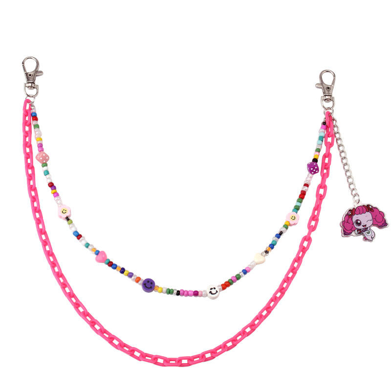 Chaîne de taille double couche en perles de rocaille colorées et résine, avec pendentif dessin animé, pour usage quotidien, chaîne de corps tendance