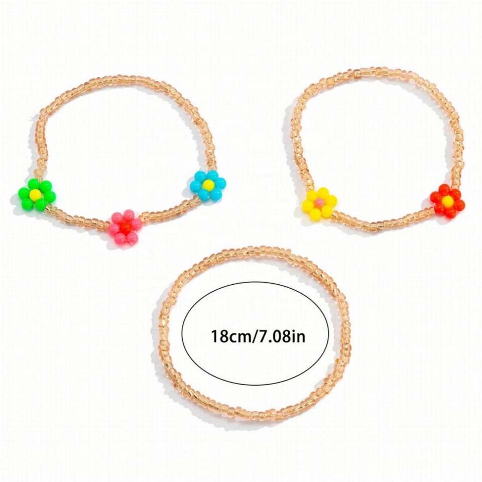 Perles de rocaille colorées perlées à la main élastique acrylique marguerite fleur breloque collier Bracelet ensemble