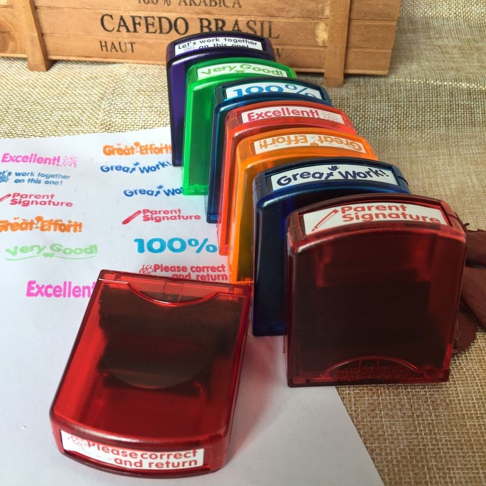 Ensemble de tampons auto-encreurs colorés pour la motivation scolaire, la notation des élèves et les enseignants, avec plateau de rangement