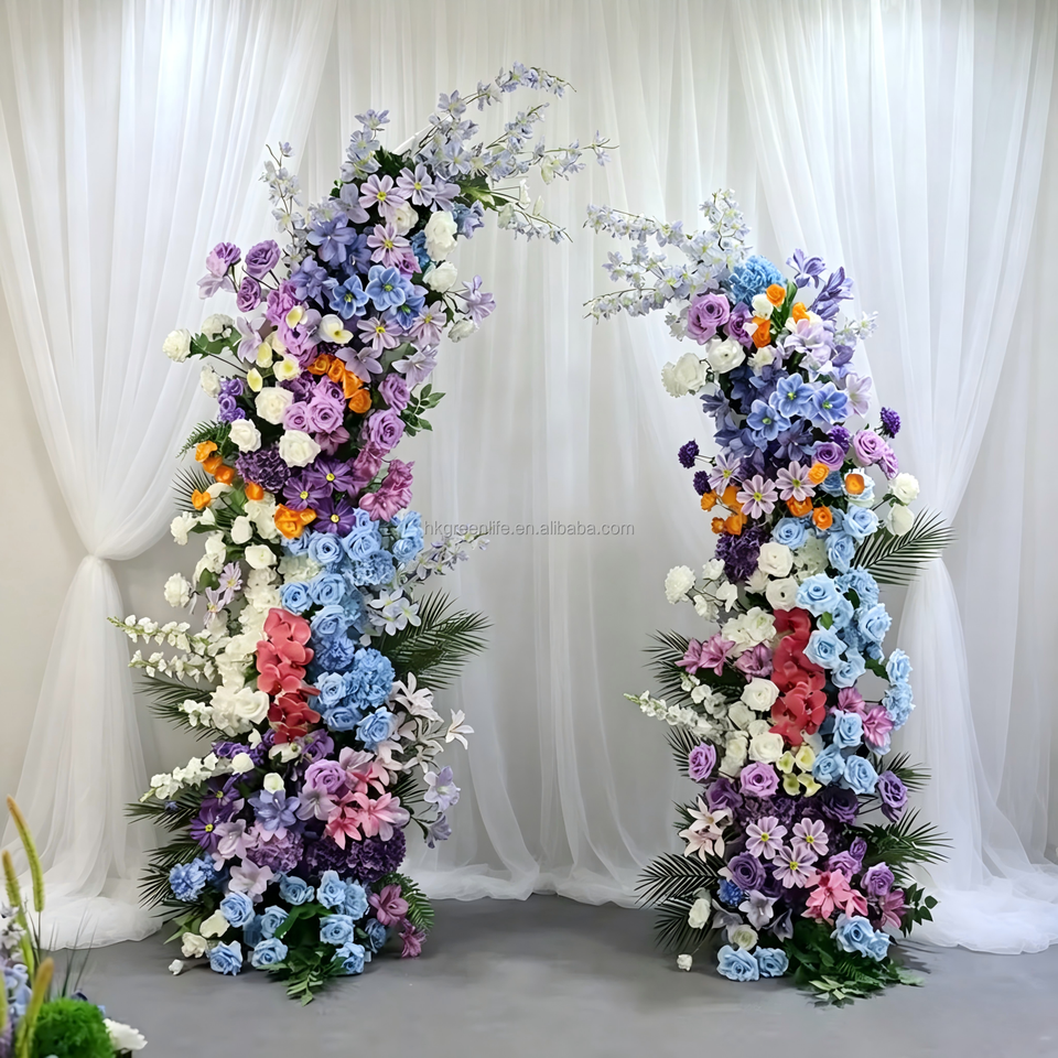 Série Forêt Printanière Colorée : Arrangement Floral Artificiel pour Allée de Mariage, Arche de Fleurs Violettes, Roses et Blanches pour Décoration d'Entrée