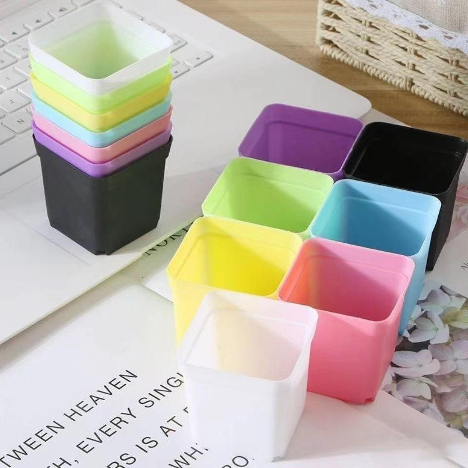 Pots à fleurs carrés en plastique colorés, en résine épaisse, pour plantes d'intérieur et d'extérieur, vente en gros FP2