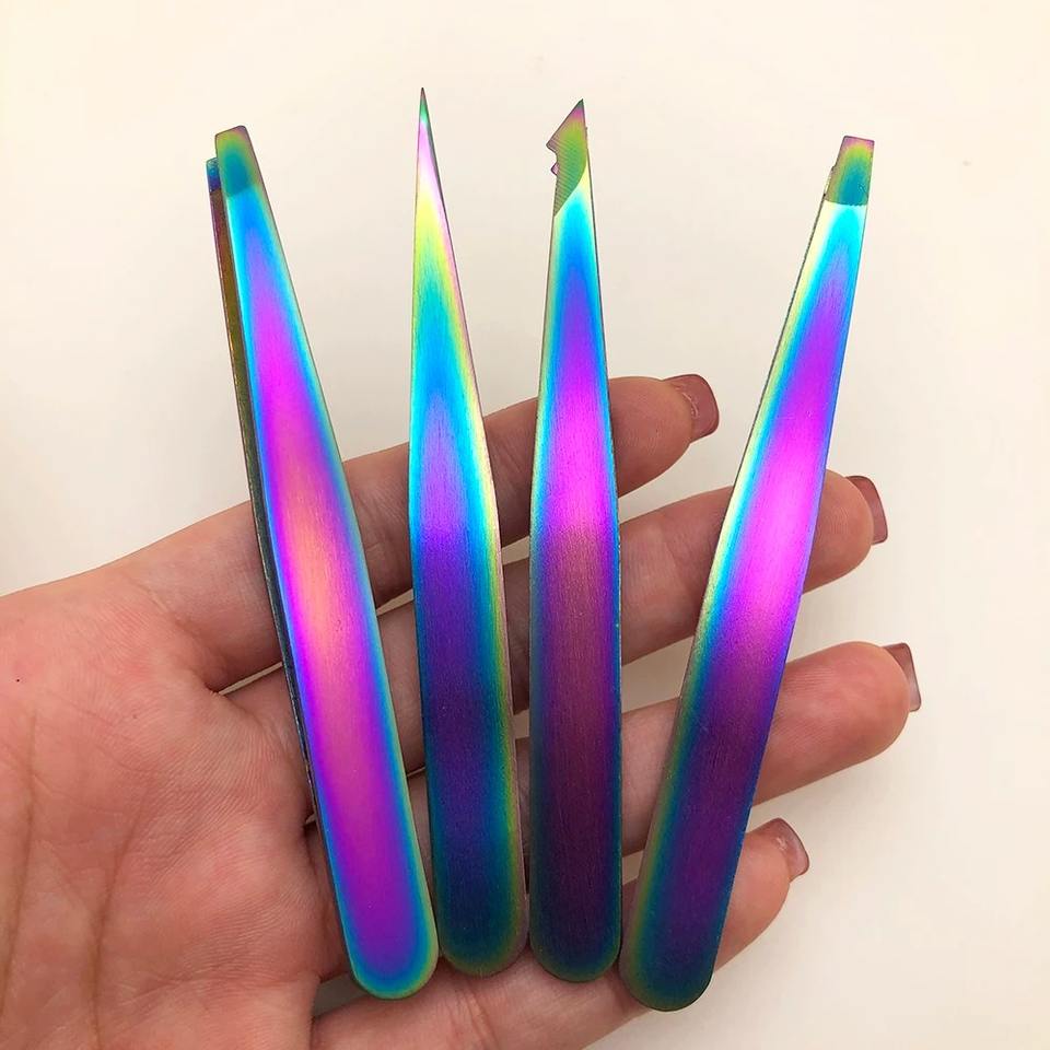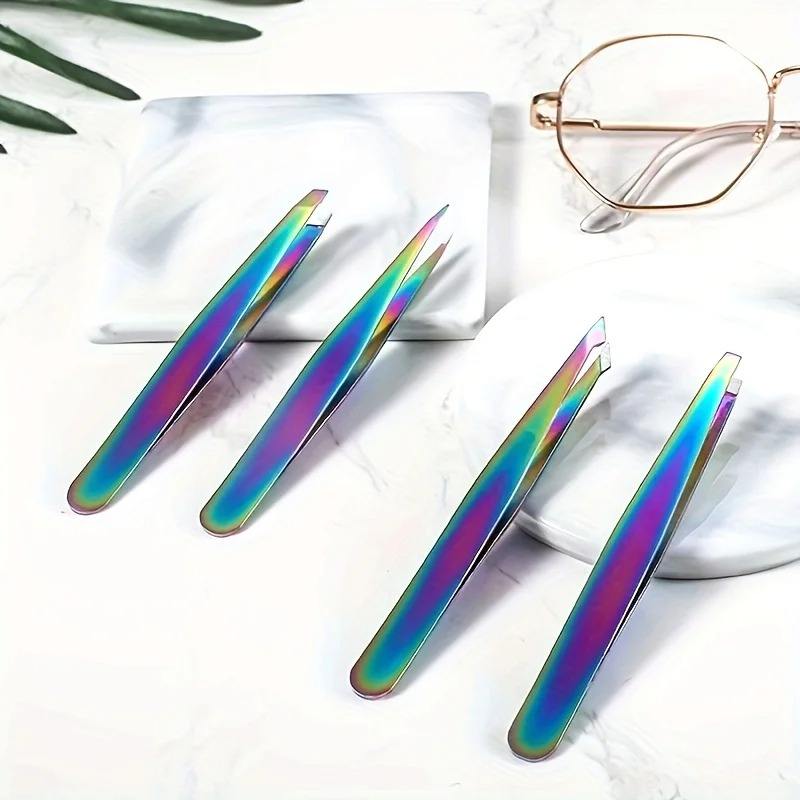 Ensemble de 4 pinces à cils en acier inoxydable coloré pour la coupe et l'épilation