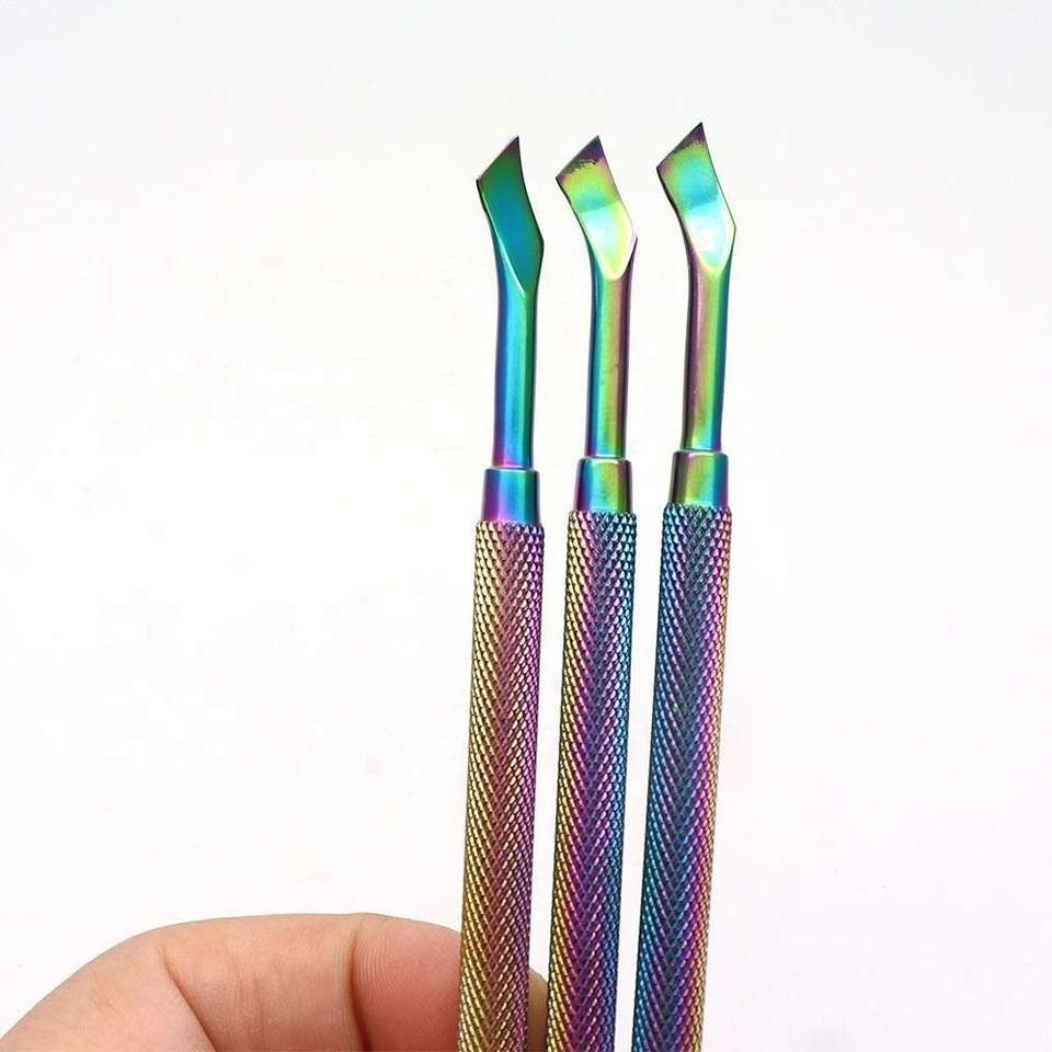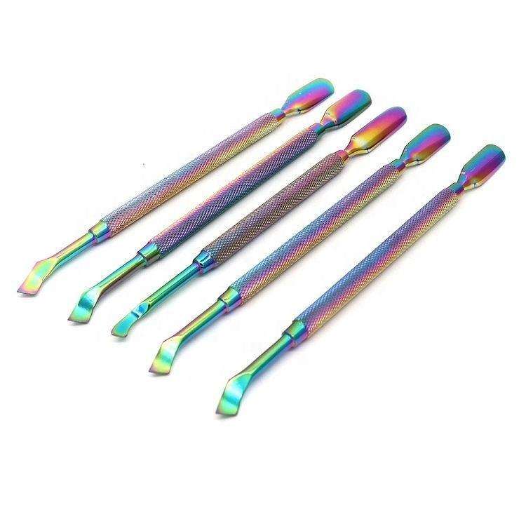 Outils de dissolvant de cuticules de poussoir d'ongle à Double extrémité d'acier inoxydable coloré pour l'art d'ongle de pédicure de manucure