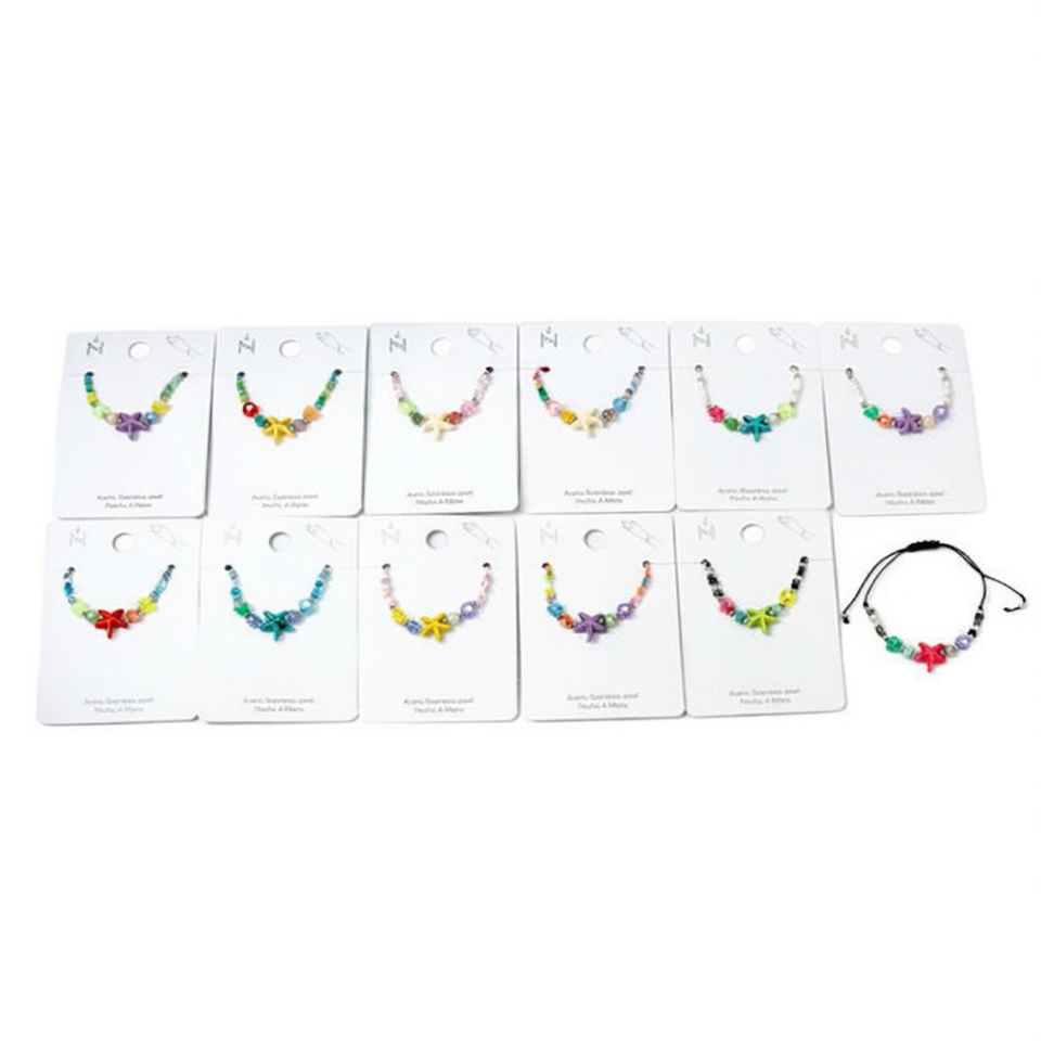 Bracelets en perles d'étoiles de mer colorées, en acier inoxydable, faits à la main, lot de 12 pièces, cadeau unisexe, style mignon