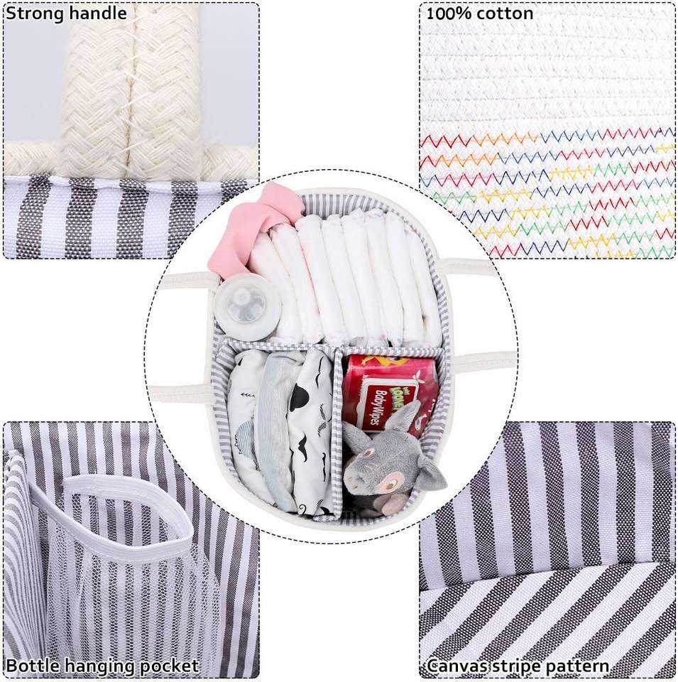 Bac de rangement en corde de coton tissé coloré pour Table à langer et voiture, sac de rangement pour couches de bébé détachables