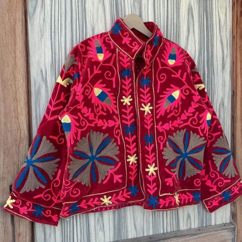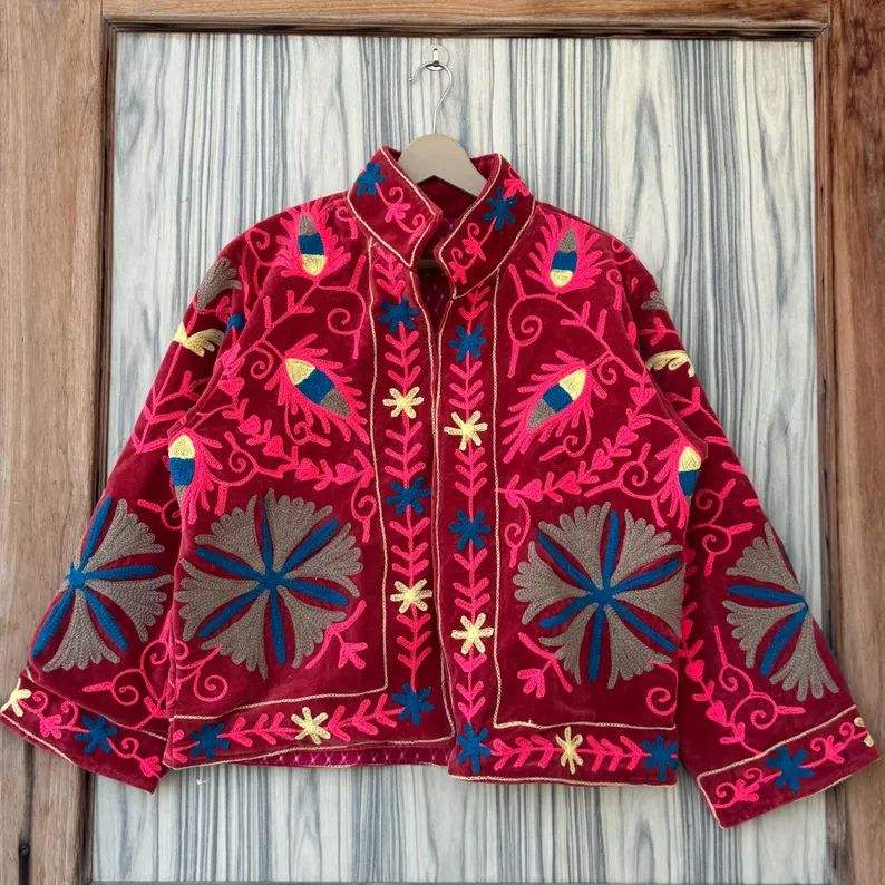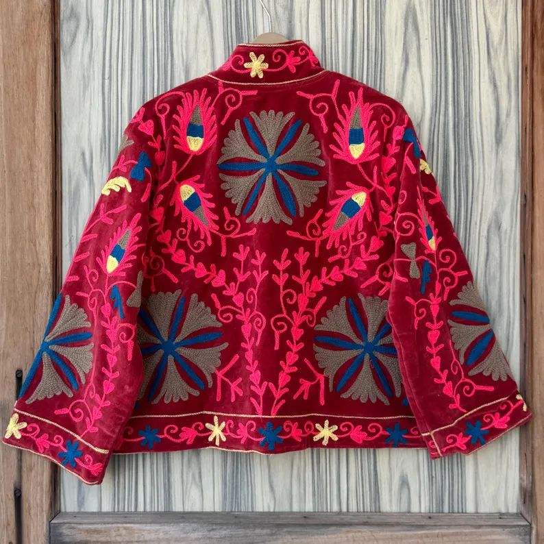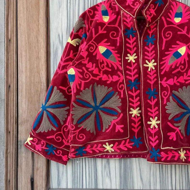 Veste en velours Suzani colorée | Manteau brodé pour invité de mariage et festival