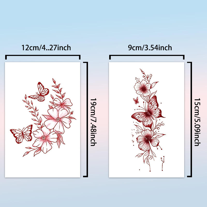 Autocollant de tatouages temporaires colorés mystique élégant tatouage au henné fleur rouge tatouage étanche pour visage bras jambe