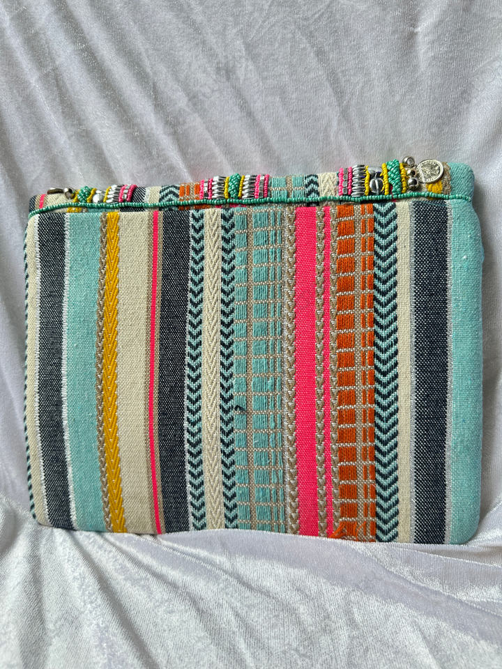 Pochette colorée en tissu tribal, sac à main brodé avec pompon, miroir et perles, motif bohème, sac à main en tissu tissé, sac de soirée tendance