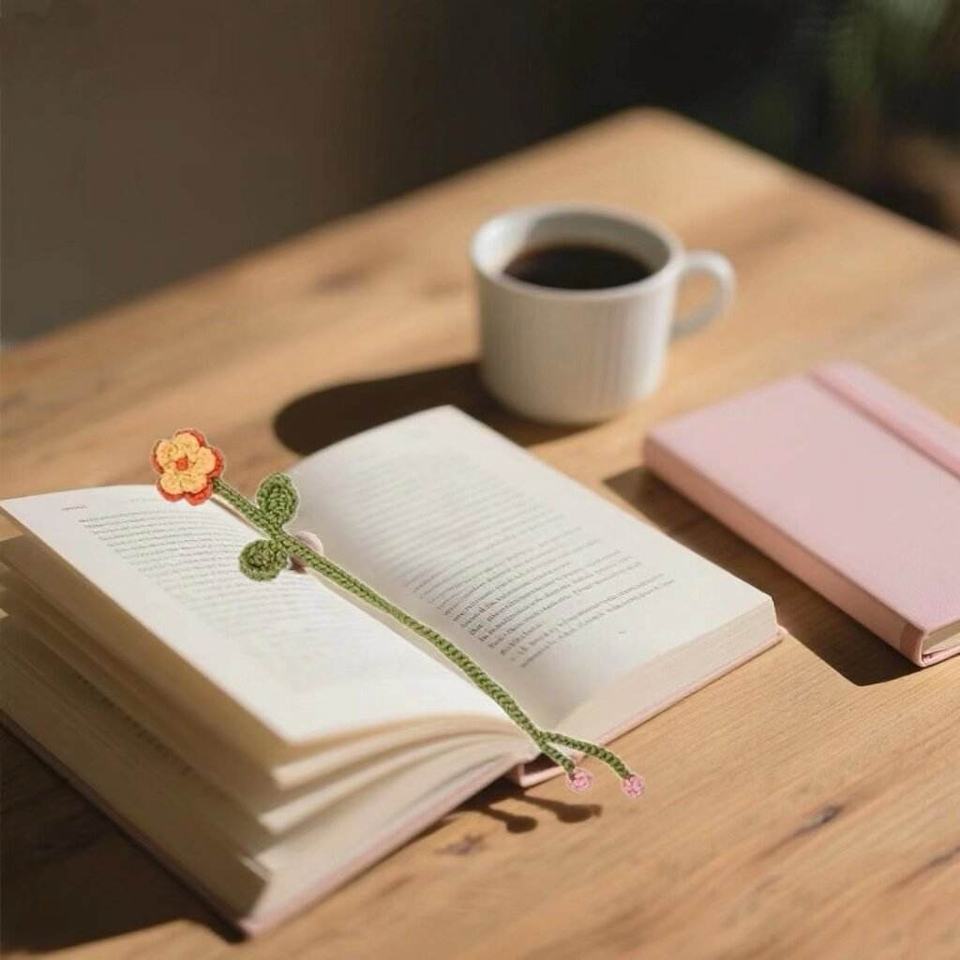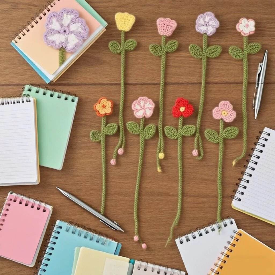 Kit de fabrication de marque-pages en crochet en forme de fleur avec fil tubulaire coloré, 8 pièces pour la création de marque-pages faits main, décoration de livres