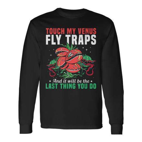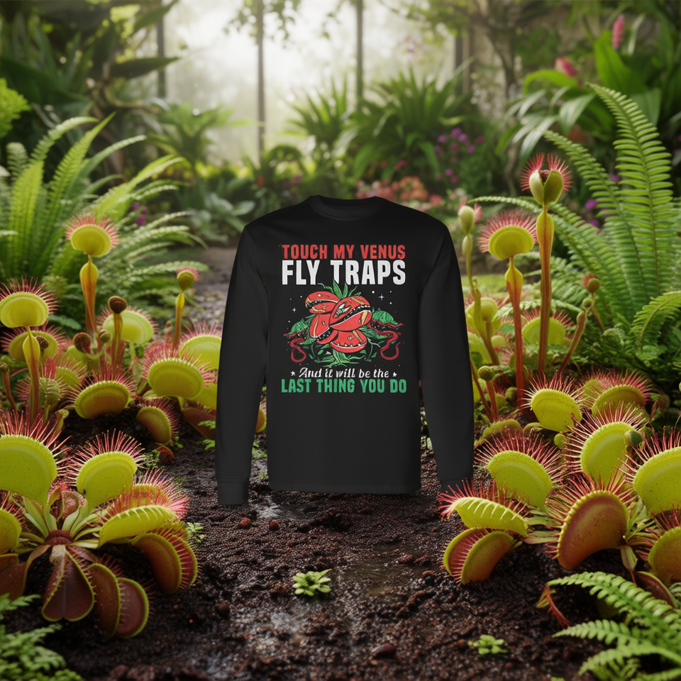 T-shirt promotionnel à manches longues avec motif de plante carnivore botanique colorée Venus Flytrap