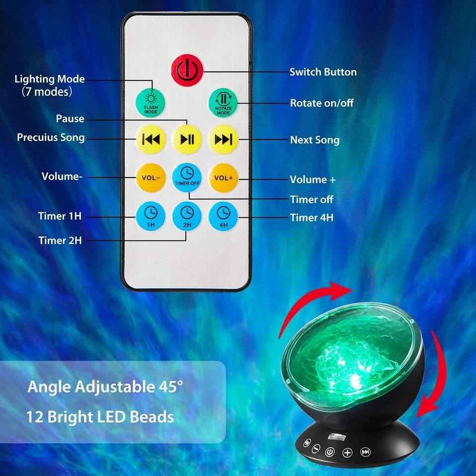 Projecteur d'effets lumineux vagues d'eau colorées, lampe projecteur d'ondes océaniques, veilleuse LED rechargeable USB, lumière musicale pour le sommeil