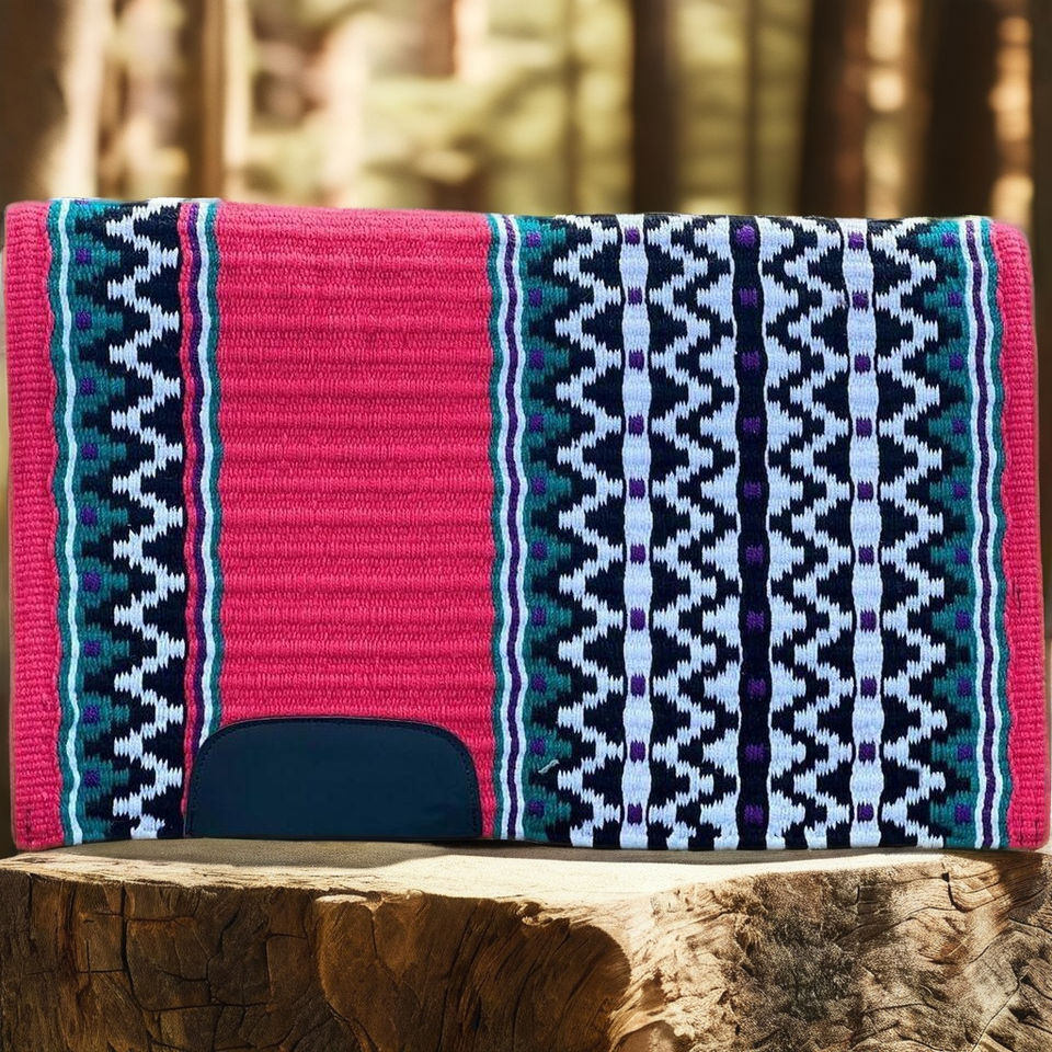 Colorful Western Horse Saddle Blanket Comfortable Durable Wool Material with Polycotton Lining for Rodeo Trail and Ranch Use