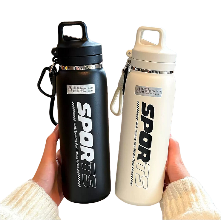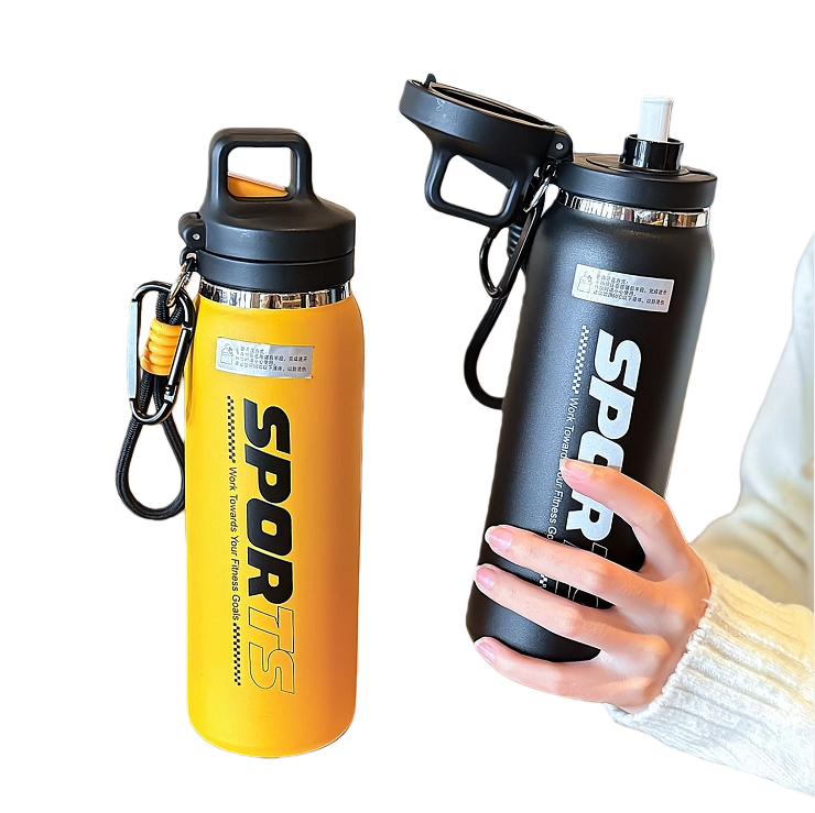 Bouteille isotherme colorée à large ouverture, prête à être expédiée, avec couvercle à ouverture rapide et sangle