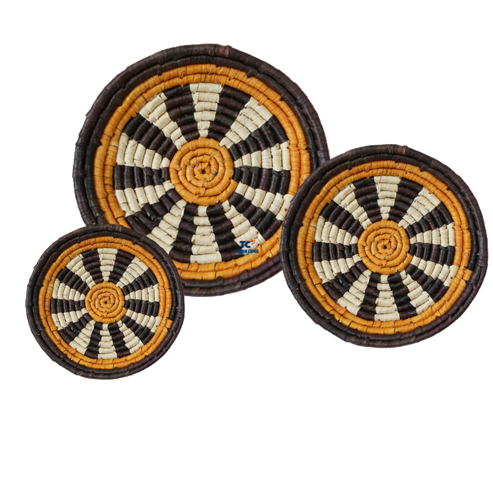 Colorful Woven Seagrass Wall Hanging Flat Basket Southwest Style Seagrass Wall Basket From Vietnam
