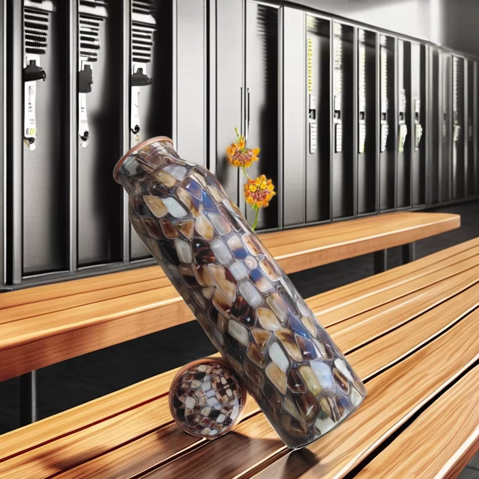 Bouteille en cuivre à imprimé floral coloré avec une artisaté traditionnelle de l'art de l'émail et une performance anti-fuite conçue pour la santé et les voyages