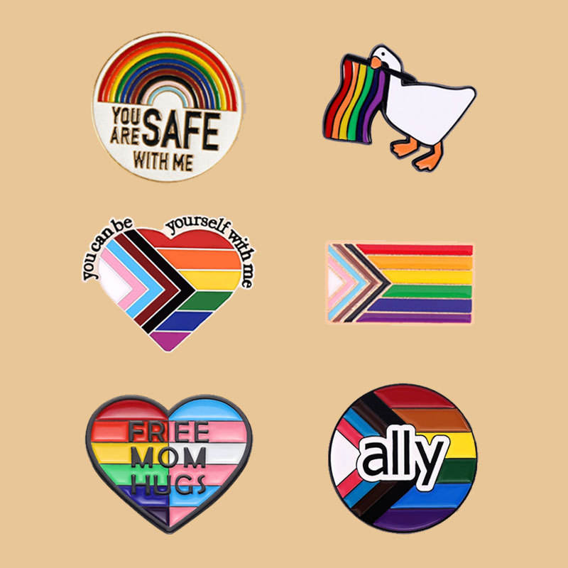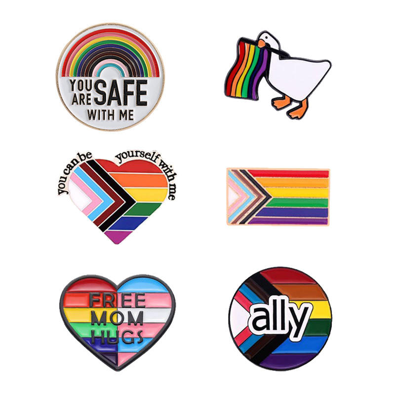Lot de Broches Émaillées Arc-en-ciel Colorées en Alliage avec Motifs Cœur/Arc-en-ciel/Oie pour Événements Pride, Usage Quotidien et Cadeaux
