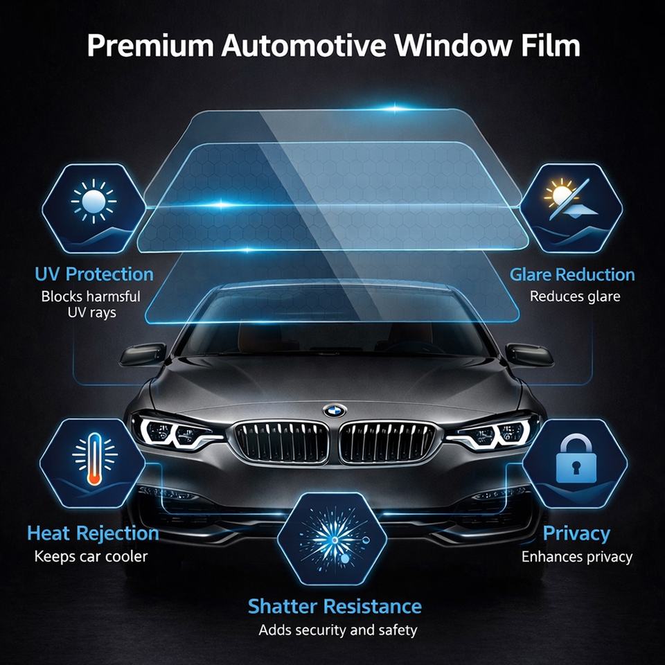 Film teinté coloré pour vitres de voiture, sensation peau, 90% de rejet IR, 99% de rejet UV, intimité, isolation thermique, 1.52x30m, matériau PET, 2 mil
