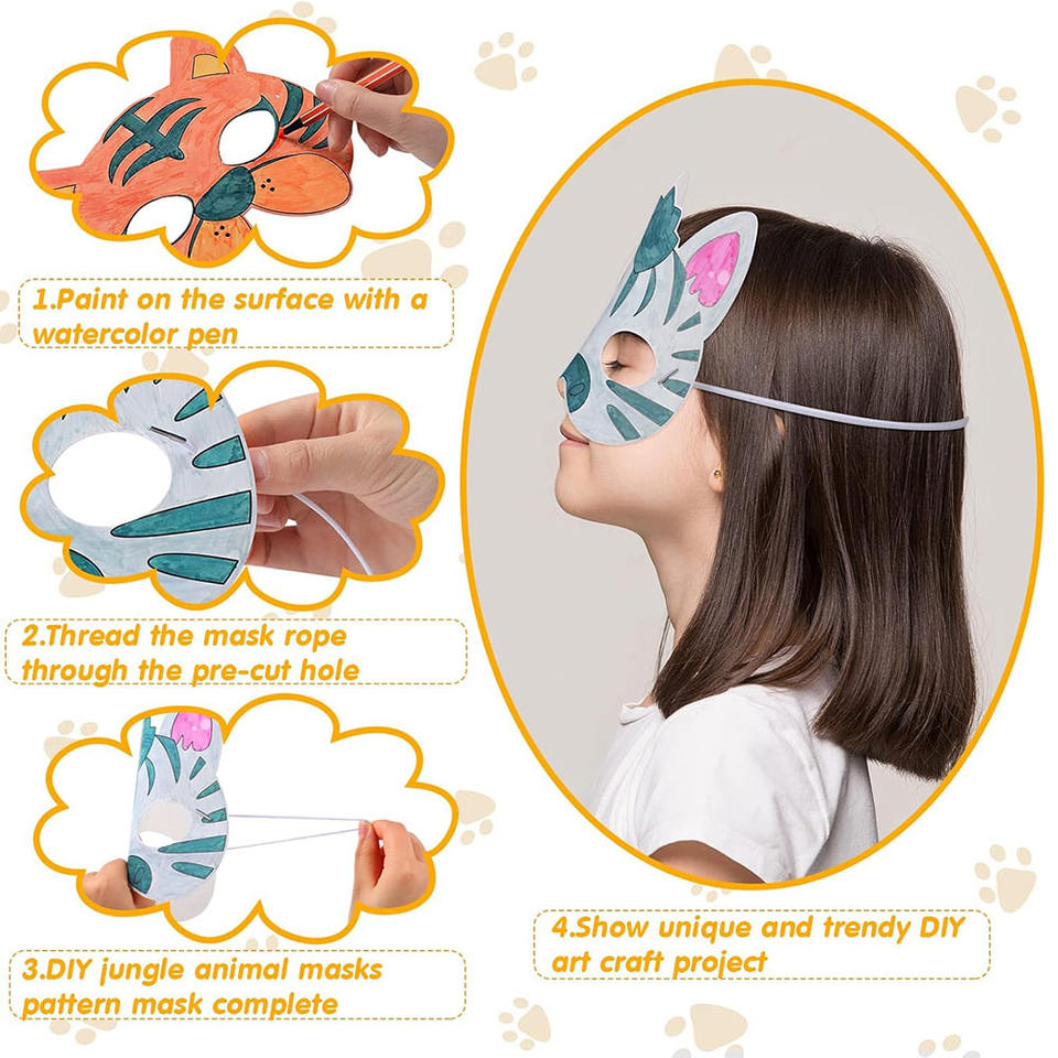 Coloriage aquarelle stylo bricolage Safari masque blanc Jungle Animal non peint enfants Cosplay mascarade Jungle à la main fantaisie fête masque