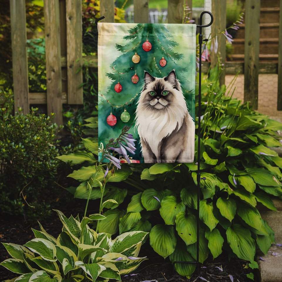 Colorpoint Longhair Cat Christmas Tree Garden Flag Multicolor Mailbox Decorative Yard Banner for Patio Artwork and Flower Beds