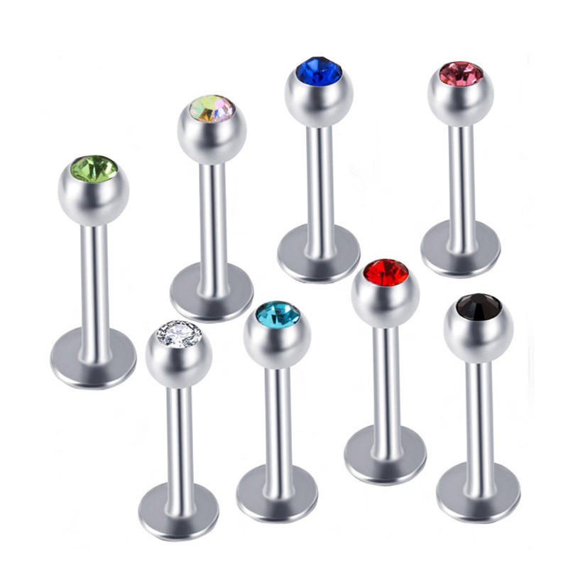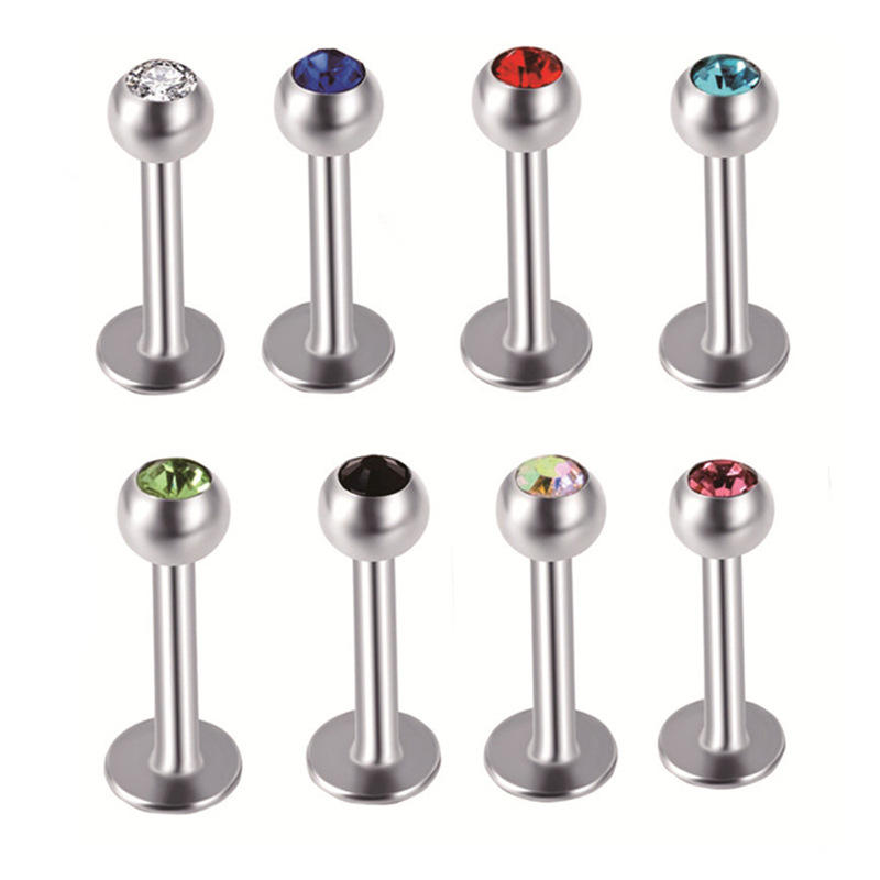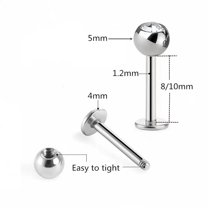 Couleur Cristal Labret Anneau 5mm Boule En Acier Oreille Nez 10mm Bar Lip Stud Piercing Bijoux