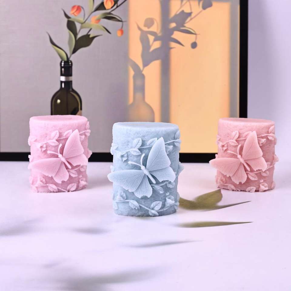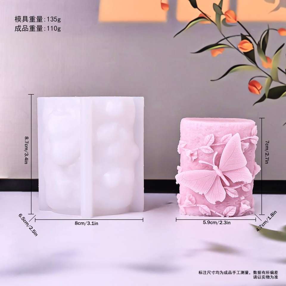 Moule en silicone pour bougie aromathérapie papillon double face, colonne de printemps, colonne de pierre rose, décoration de colonne
