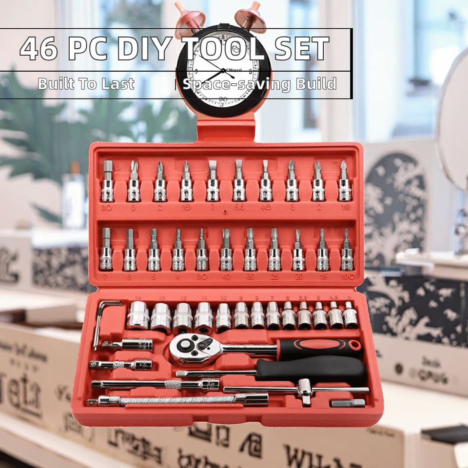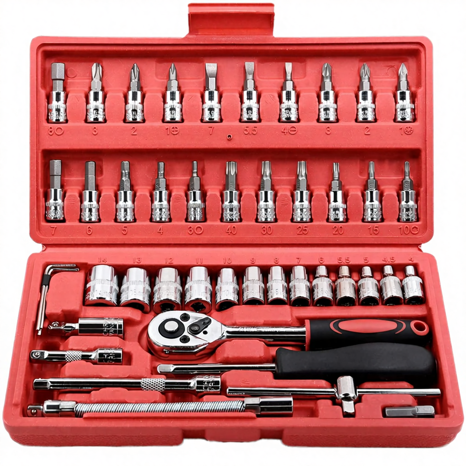 Jeu de clés à cliquet manuelles combinées en acier au carbone, 46 pièces, kit d'outils OEM personnalisable, faible MOQ, en stock pour le bricolage