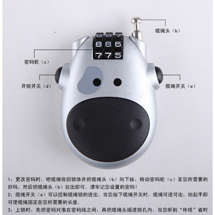 Verrou de casque combiné avec câble en acier rétractable pour moto, véhicule électrique, sécurité des portes et des fenêtres, argent, noir, ABS