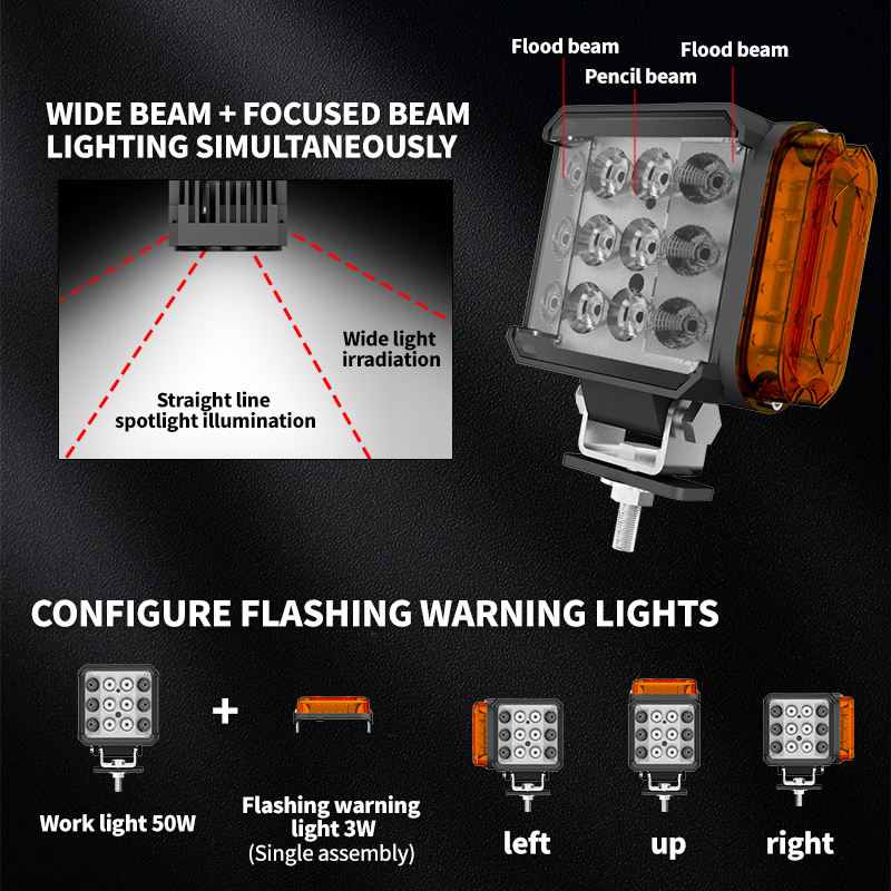 Équipement agricole Combo Beam, phare de signalisation stroboscopique à double fonction, lampe de travail LED industrielle et de construction