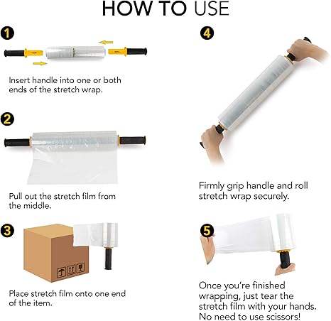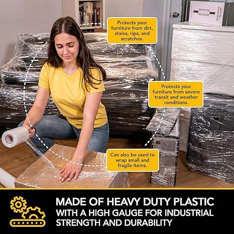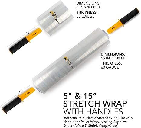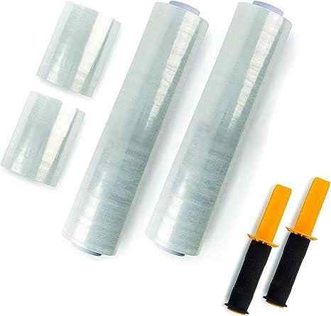 Ensemble de rouleaux de film étirable Combo, films de 15 et 5 pouces de large avec poignées, 4000 pieds au total, film rétractable transparent auto-adhésif