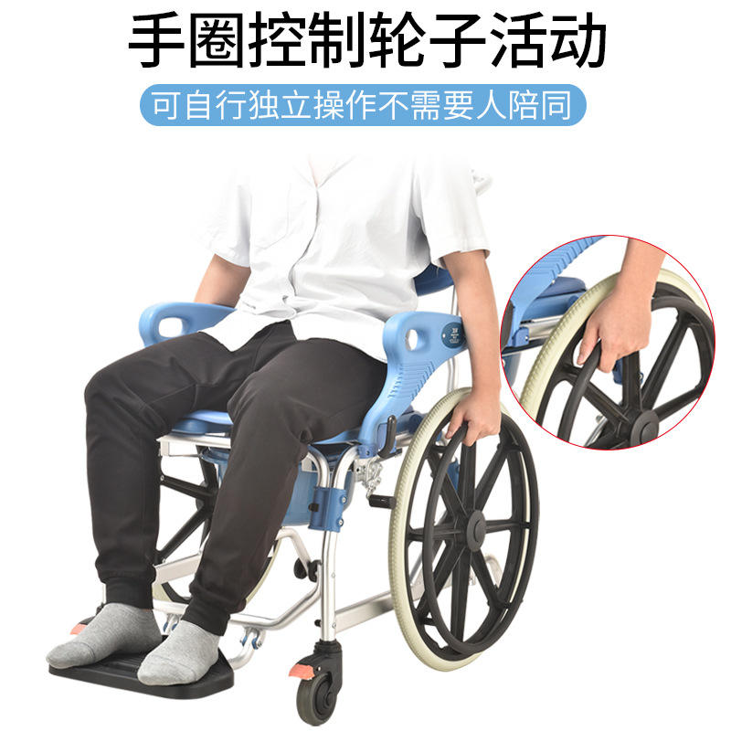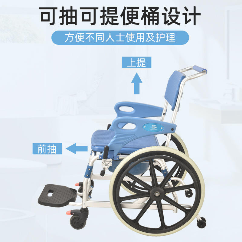 Chaise de toilette confortable avec accoudoirs rabattables et frein, roues de 4 pouces, solution de mobilité pour soins à domicile pour personnes âgées
