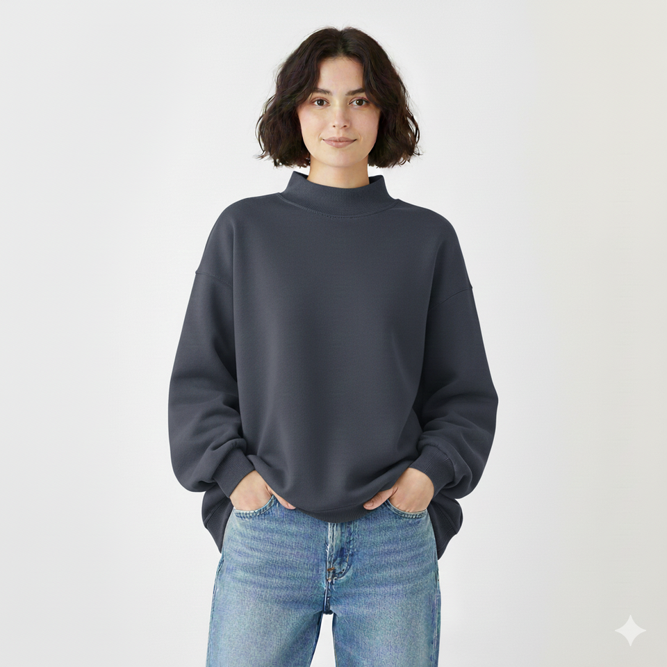Sweat-shirt à col montant en molleton tricoté pour femme, coupe confortable, ample, décontracté, pour l'hiver, style streetwear, haut à enfiler