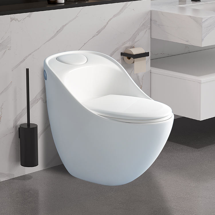 Confortable en 1 pièce pour les toilettes, bouton-poussoir rond, cuvette de toilette colorée, accessoires de mode