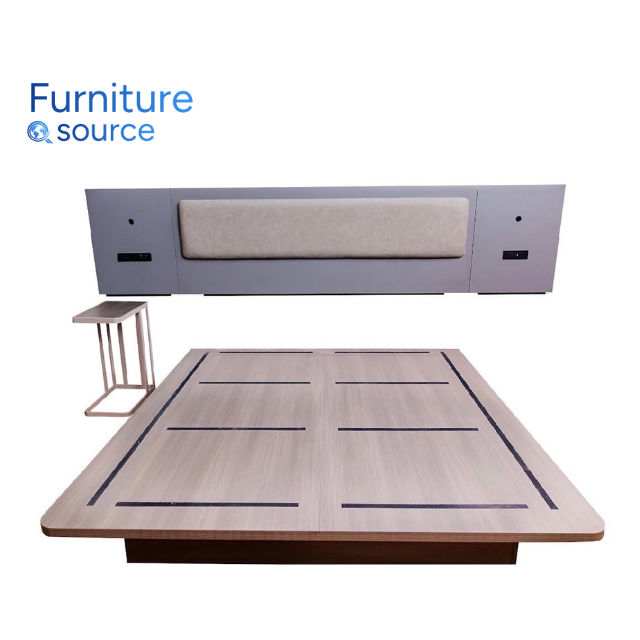 Projet Comfort Inn Case Design moderne Cadre de lit King Ensembles de meubles de chambre Marché américain Meubles d'hôtel en bois massif Approvisionnement d'usine