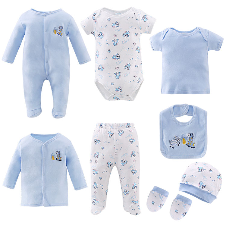 Ensemble de 8 barboteuses confortables 100 % coton pour bébé, collection printemps, imprimé animaux de dessin animé, unisexe, coffret cadeau
