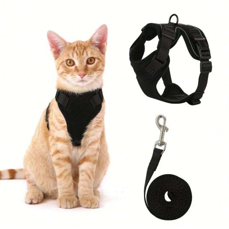 Harnais de chat réglable confortable gilet pour animaux de compagnie en tissu anti-évasion avec laisse de contrôle facile sécurisé pour Halloween promenades de sécurité chiens