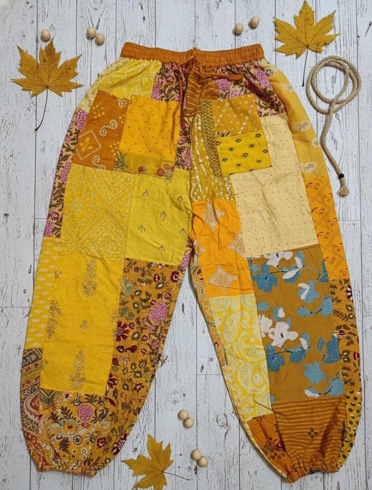 Pantalon de yoga confortable et respirant pour l'été, style patchwork bohème hippie vert, super confortable, vente en gros pour femmes