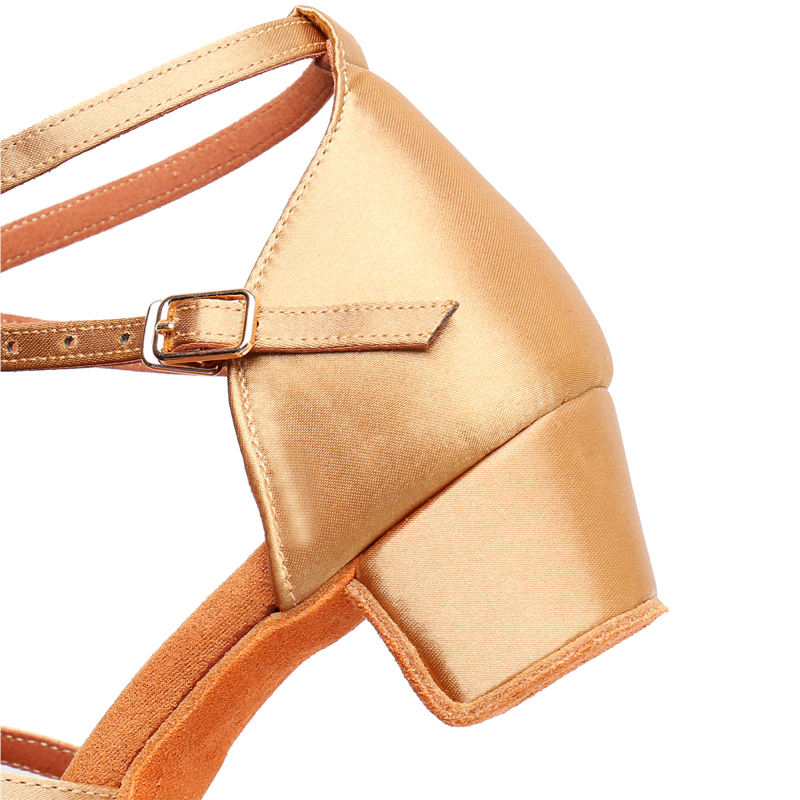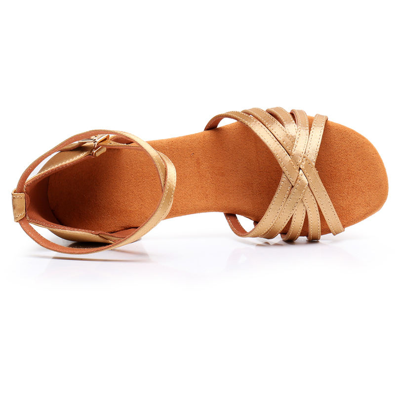 Comfortable Brown Satin Cuban Low Heel Classic Style Ballroom Latin Dance Sandals Teenage Girls/Children Made Leather Lace Upper