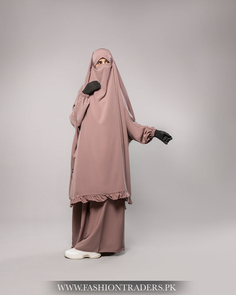 Product name:Two Piece Ruffle Jilbab With Elastic Sleeves