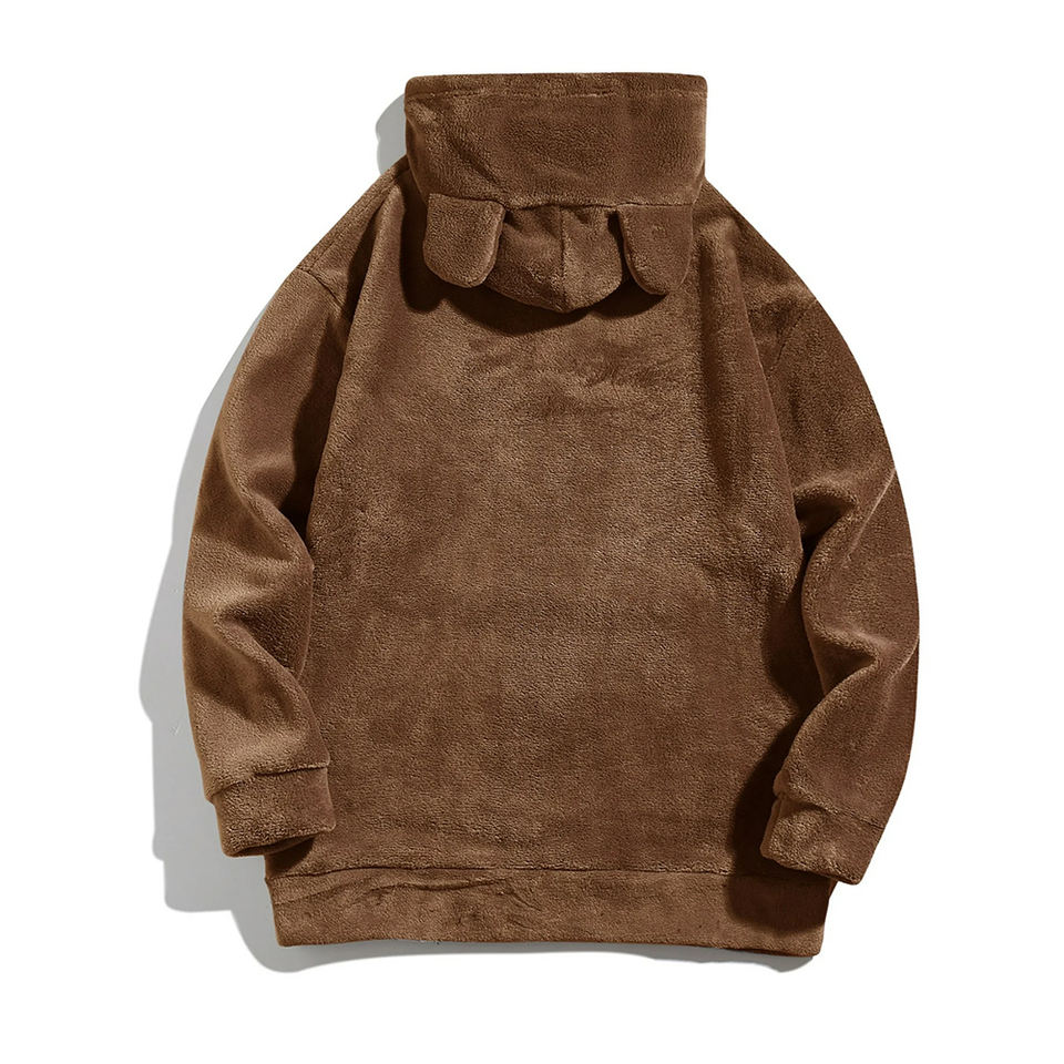 Sweat à capuche en fourrure confortable couleur marron foncé 300 GSM pull d'hiver à manches longues sweats à capuche en fourrure avec forme d'ours en peluche