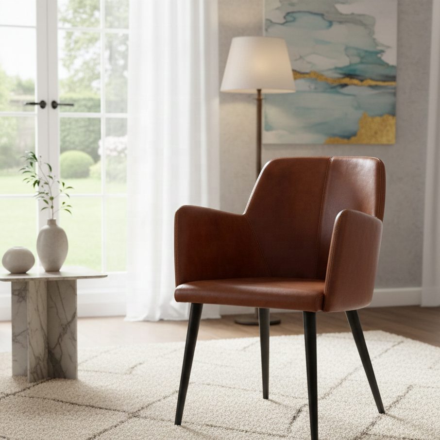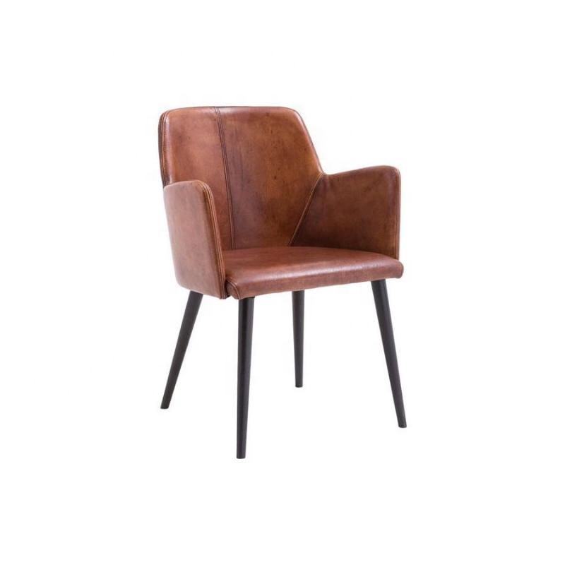 Chaise de salle à manger industrielle confortable en cuir véritable marron pour la maison, les restaurants, les hôtels, les appartements, les villas
