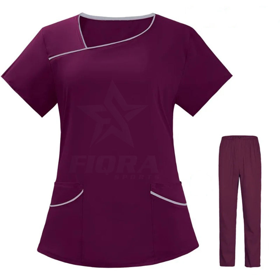 Ensembles de gommage hospitalier confortables avec tissu sergé Durable infirmière travail médical ensemble de gommage à la figue avec manches courtes femmes ensemble de gommage haut