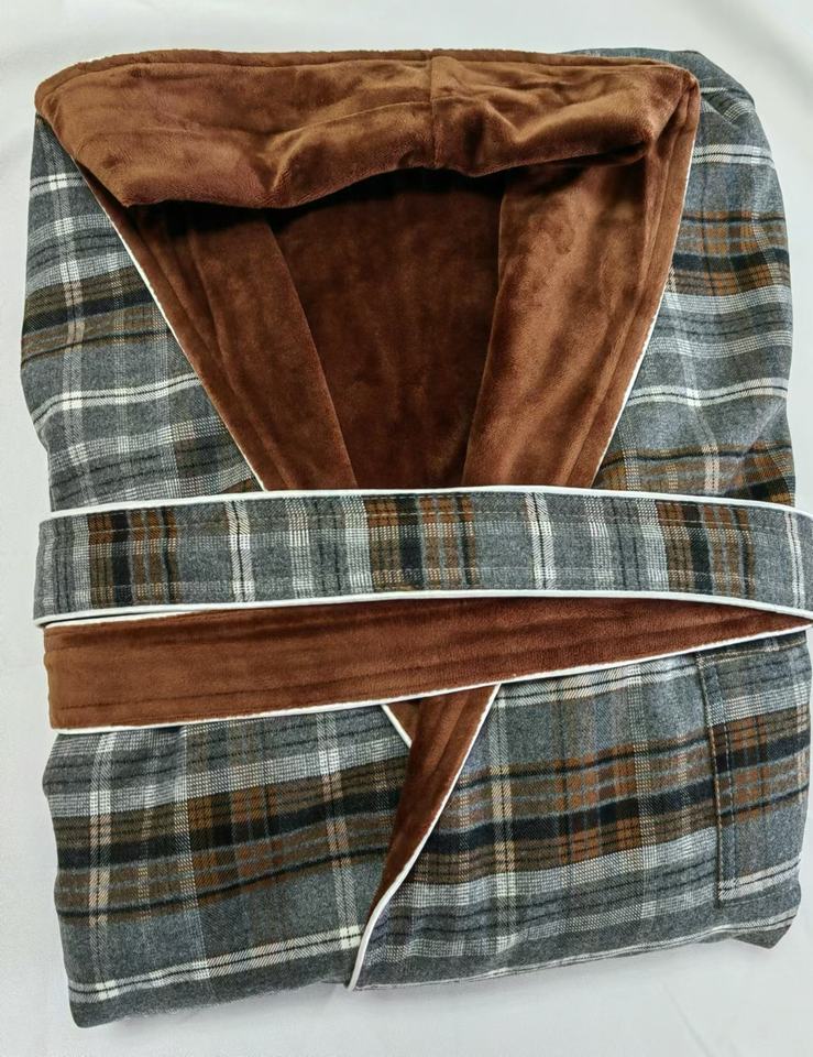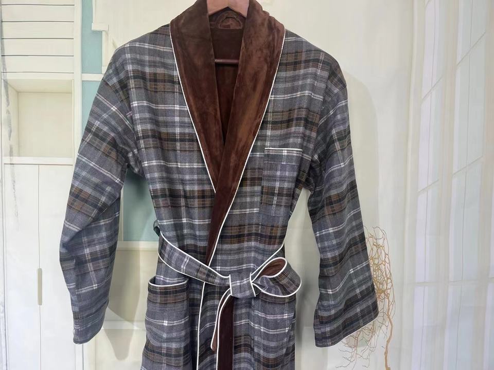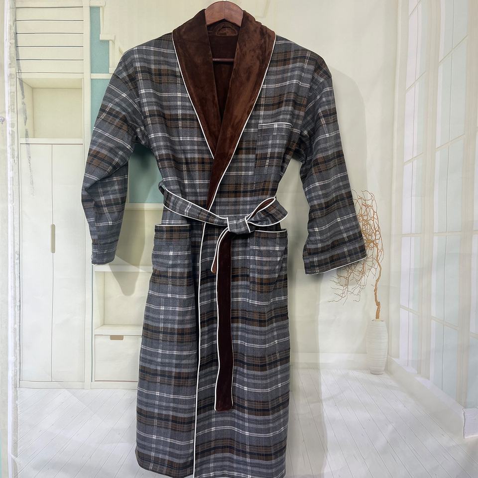 Peignoir confortable de grande taille en microfibre respirante à carreaux, double couche, manches longues, pour homme