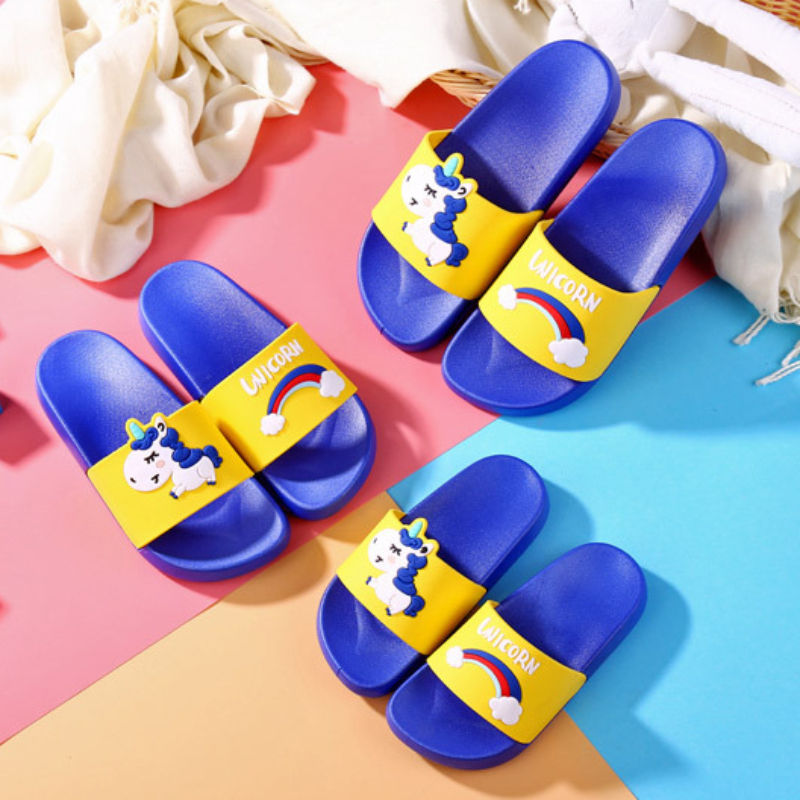 Confortable en plastique PVC imprimé Logo maison enfants pantoufles intérieur antidérapant enfants bébé filles garçons licorne pantoufles nouveau