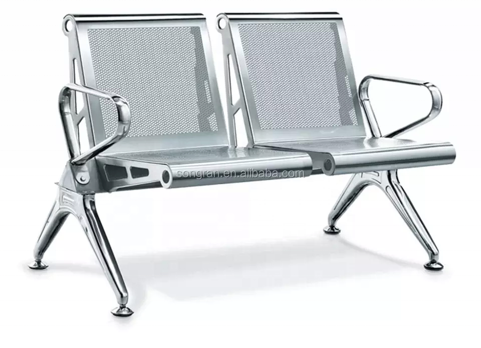 Banc d'attente confortable en métal inoxydable pour gares, aéroports et hôpitaux, 3 places