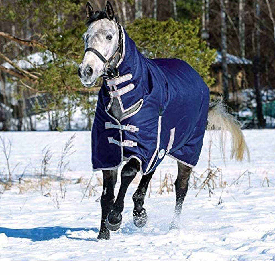 Couverture pour chevaux bleue confortable et réutilisable, en coton synthétique durable, pour toutes les saisons (hiver et été)