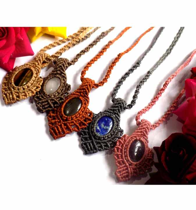 Collier en macramé labradorite, pierre ovale, fil multicolore, style bohème, cordon réglable, bijoux faits à la main pour femmes