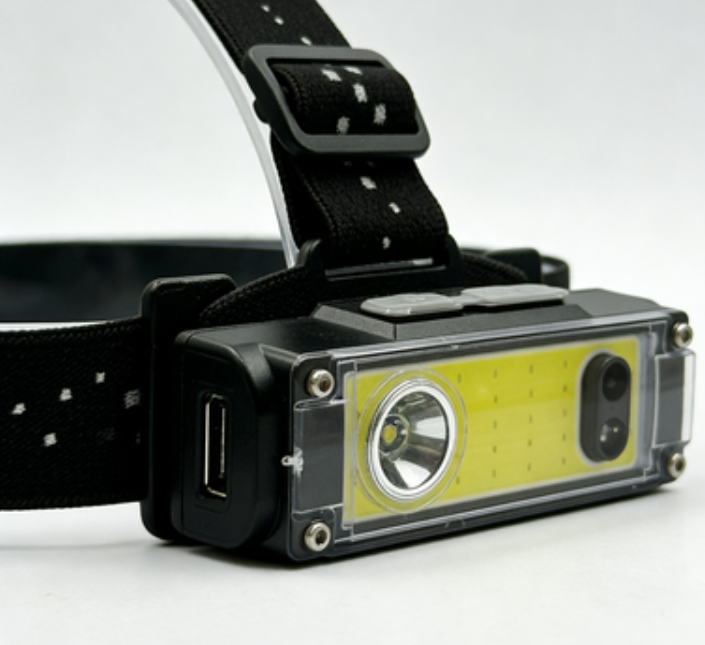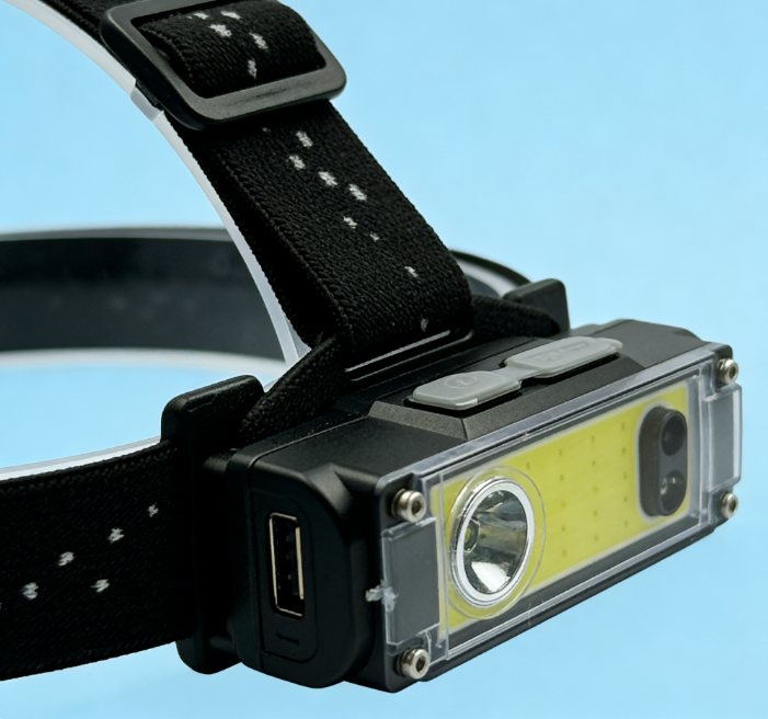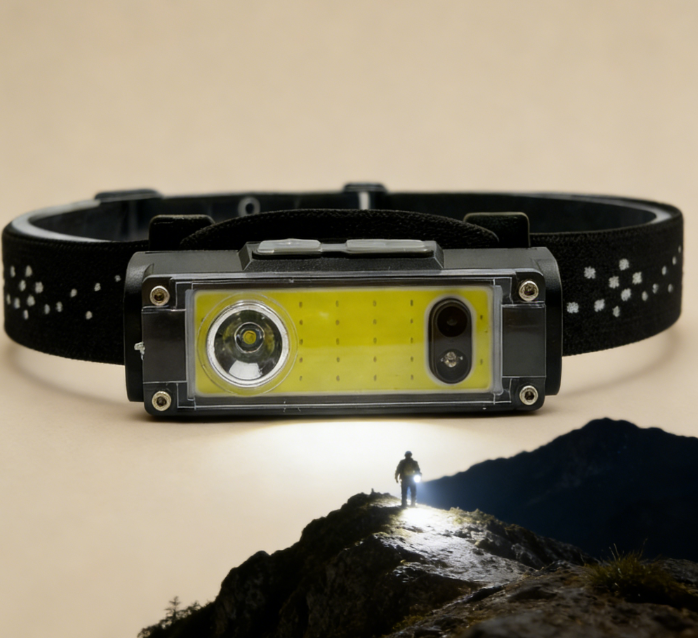 Lampe frontale LED confortable, rechargeable par USB, étanche IP65, faisceau réglable, bandeau respirant, design léger pour un port prolongé