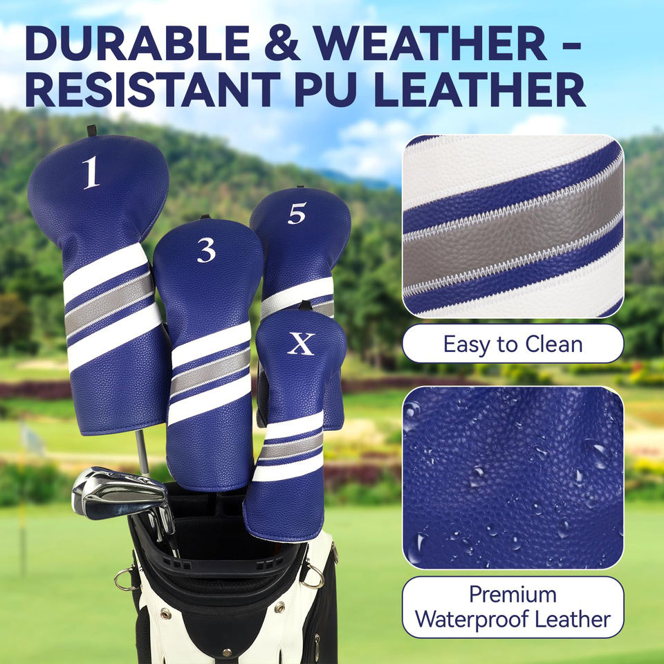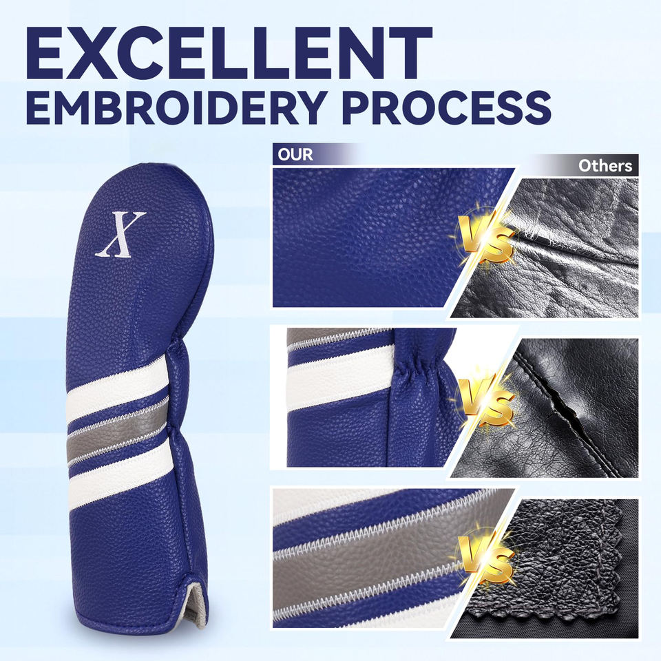 Housse de tête de club de golf universelle confortable en cuir PU imperméable avec fermeture élastique, broderie personnalisée, options de couleurs