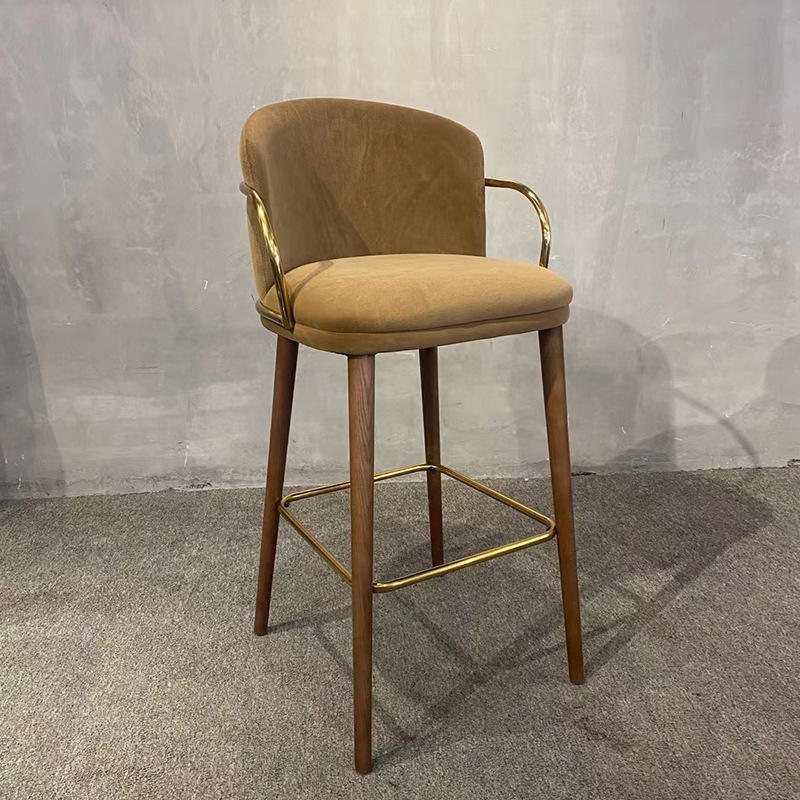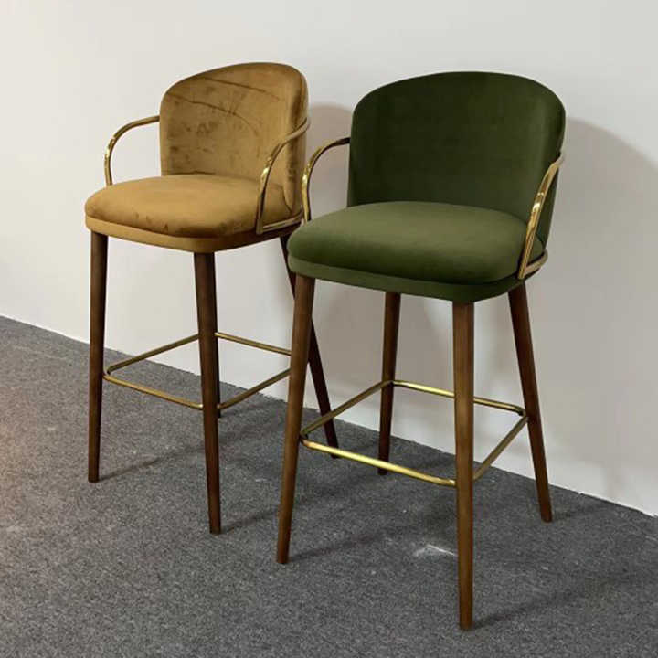 Tabouret de bar confortable en velours avec pieds en bois de frêne massif, chaise de bar réglable en hauteur avec accoudoirs dorés pour la maison, la cuisine, le café, la terrasse, le bar